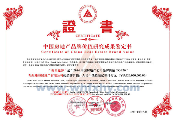 福星惠譽(yù)蟬聯(lián)“2014中國(guó)房地產(chǎn)專業(yè)領(lǐng)先品牌TOP10”品牌價(jià)值56.2億
