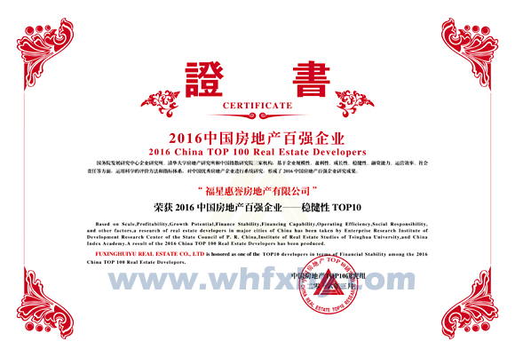 福星惠譽(yù)蟬聯(lián)2016年中國(guó)房地產(chǎn)百?gòu)?qiáng)
